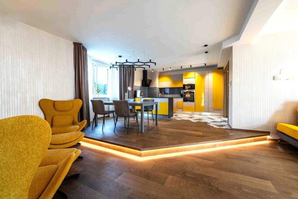 Вітальня з каміном + кухня — 52 м²