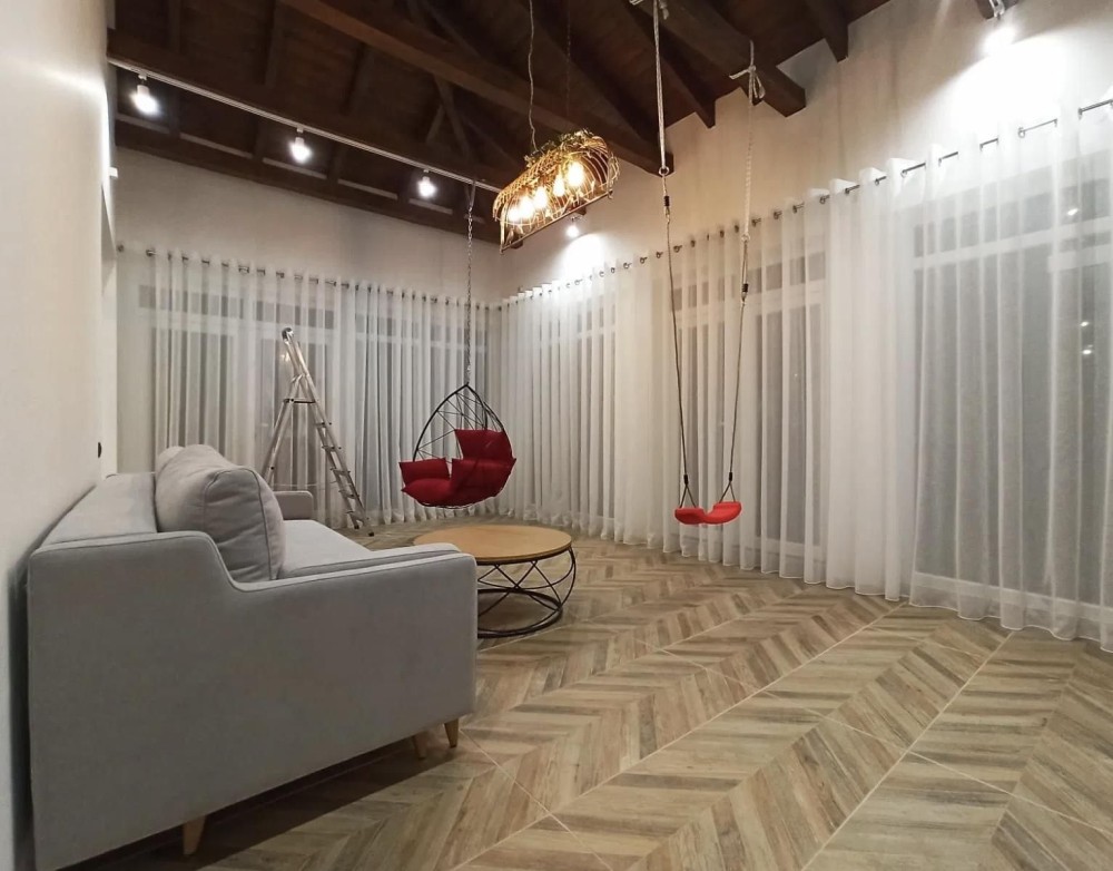 Выполнен авторский дизайн. Дом полностью укомплектован мебелью и бытовой техникой.