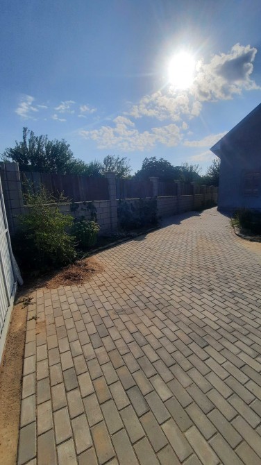 Предлагаю современный дом свободной планировки площадью 80 м², построенный из прочного керамзитобетона. Участок огорожен забором, заведены электричество и вода, газ проходит по фасаду.