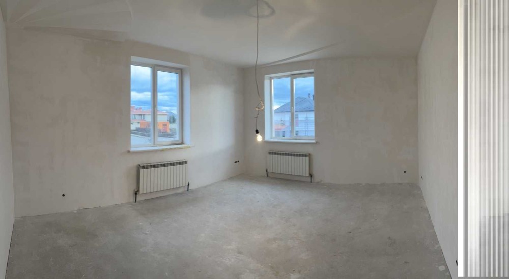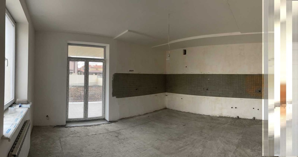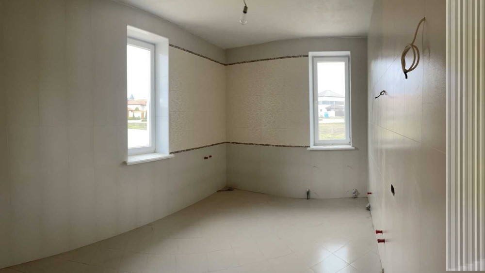 У будинок введено всі комунікації, зроблено розведення. Стіни оштукатурені та відшпакльовані. У санвузлах постелена плитка.
