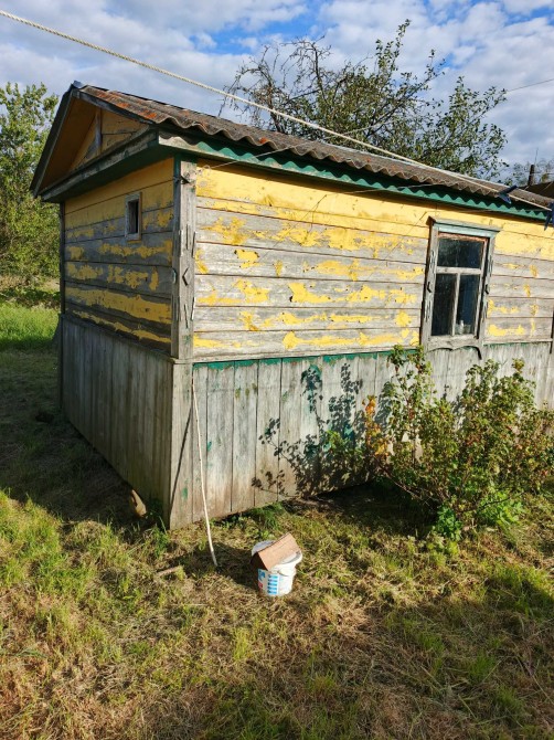 Домик для пчеловода - можна для бани битовки для стройки для дачи. Каркас - швелер и крокви 100х50мм.Пол и стени доска - 40мм. Наружная обшивка доска 25мм в четверть. Криша шифер. Домик не утеплен. Сваренный на трубах и концы труб загнуто на фото видно. Ширына- 3.15. Длина- 6.15. Висота до конька криши- 3м. Доставка самовивоз. Звоните возможен торг.