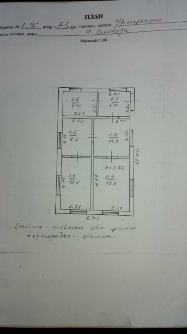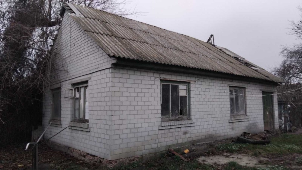 Фундамент -- бут, стіни -- шлакоблок + цегла, дах -- шифер