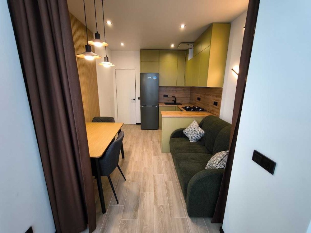 Авторський проект, якісний ремонт, як для себе. Сучасні меблі, техніка, освітлення. Лоджія обладнана робочим місцем, шафою для зберігання, на вікнах жалюзі день-ніч. Опалення газове - тепла підлога і електричне - кондиціонер. Гарний вид з вікна на відпочинкову зону та джерело. Комфортний 2 поверх.
