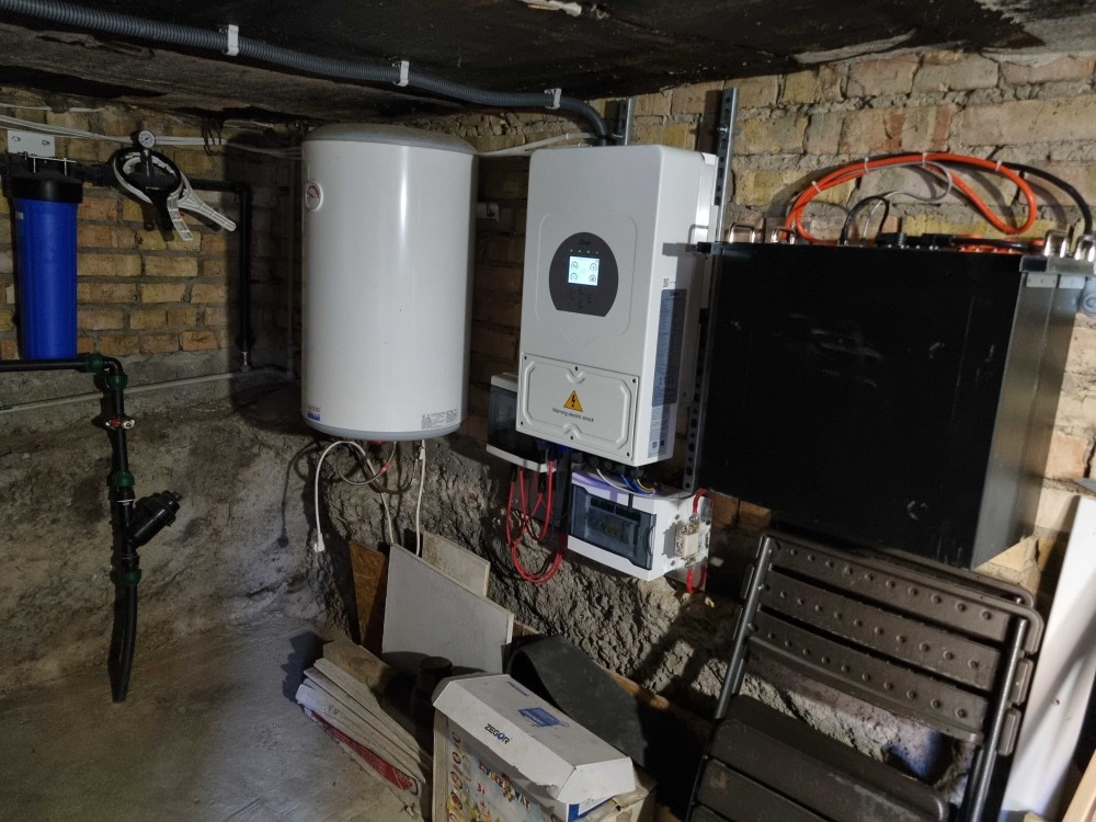 Резервне електроживлення від LiFePo акумуляторів (запас 7 кВт) через інвертор Deye (потужність) 6кВт, а також СОНЯЧНИХ ПАНЕЛЕЙ (потужність 2,4 кВт).