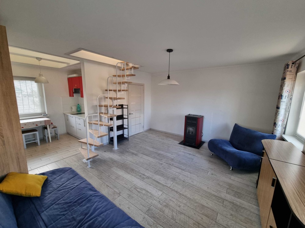 Здається в оренду квартира з власним двором, неподалік центру міста, 2 кімнати, вітальня з каміном, кухня та ванна.