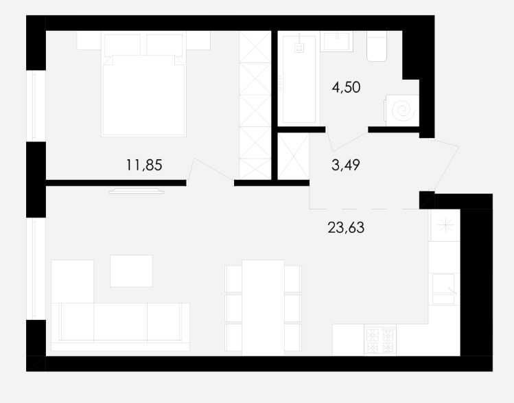 • Общая площадь 44 м2