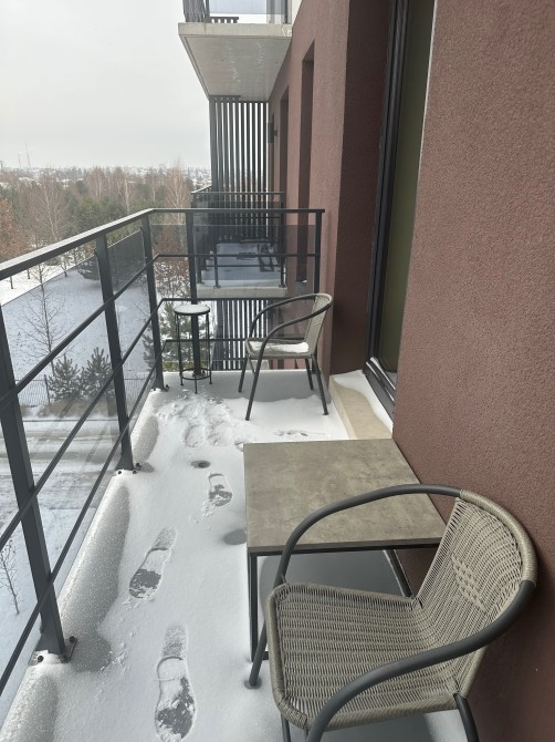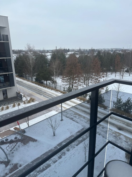 У квартирі спальня та кухня-зал із розкладним диваном, обидві кімнати мають вихід на великий балкон. З балкона відкривається вид на зелений парк та на тихий внутрішній двір, що створює відчуття простору та спокою.
