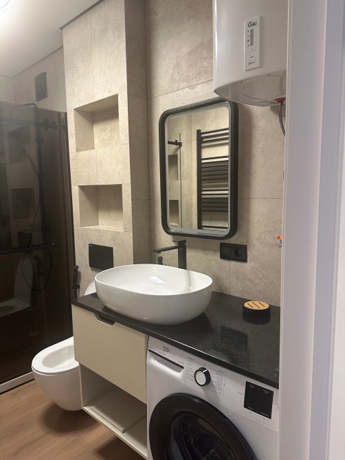У санвузлі великий душ і пральна машинка, щоб повсякденні справи були максимально комфортними.