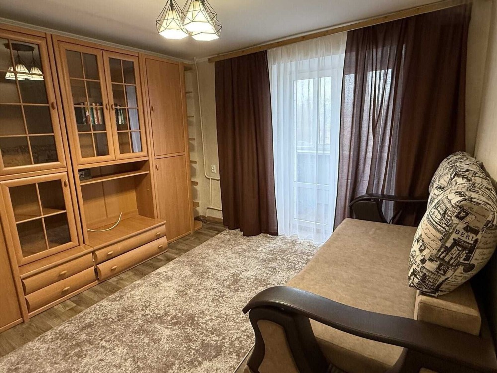 Квартира має зручне планування: простора кімната, охайна кухня та суміжний санвузол.