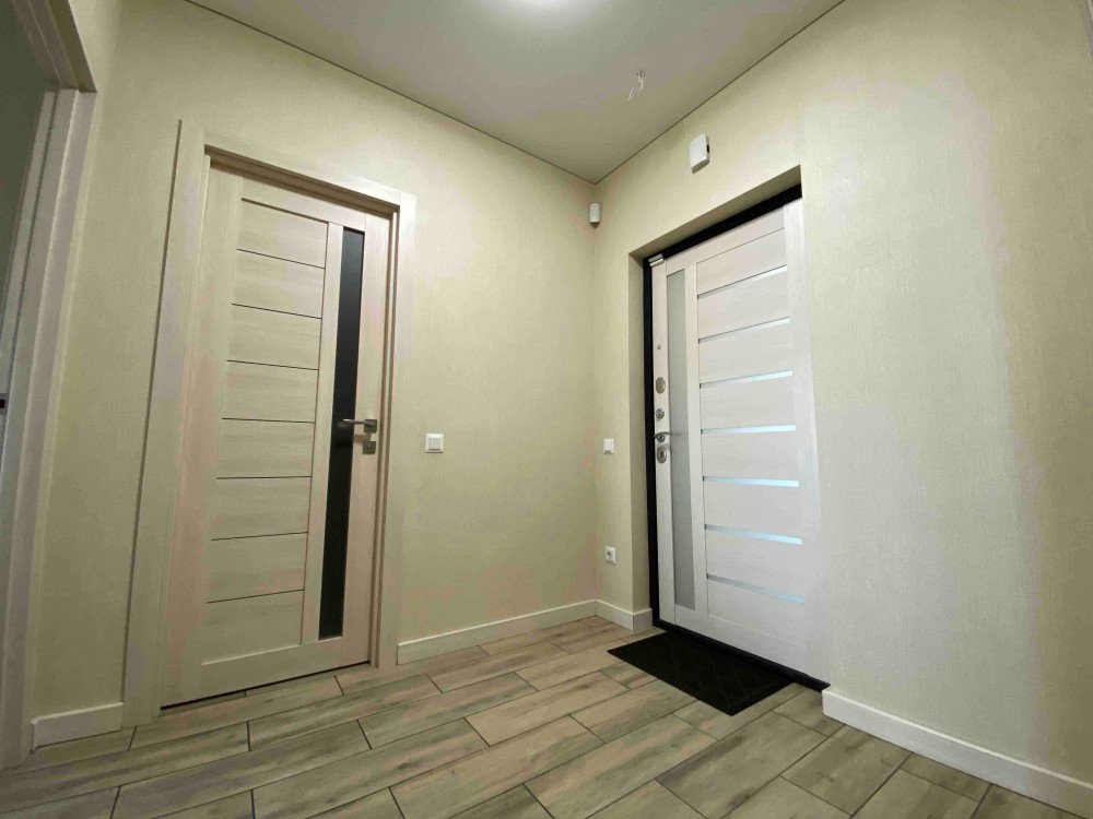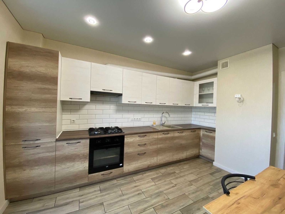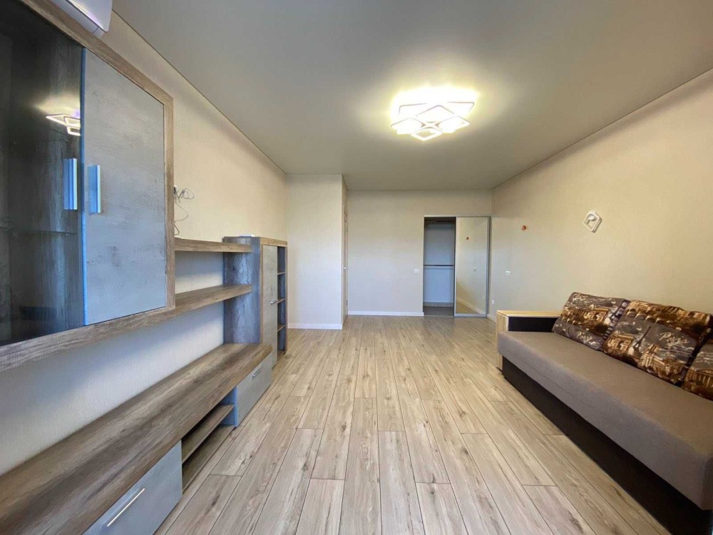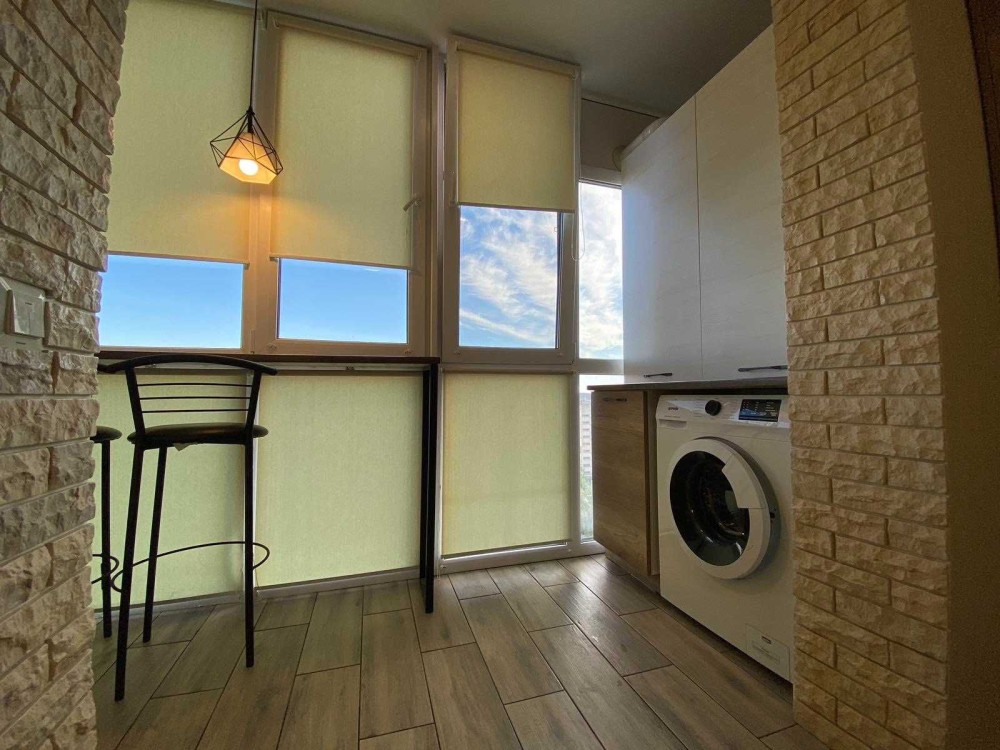 Загальна площа становить 50 кв.м. Житлова площа 17 кв.м. Площа кухні 17 кв.м. Санвузол суміжний. Євроремонт. Є балкон. З теплою підлогою. У квартирі панорамні вікна.