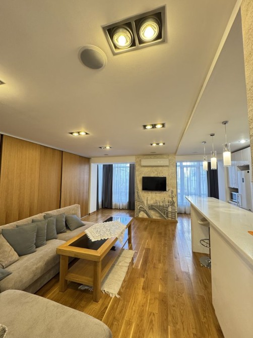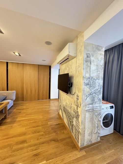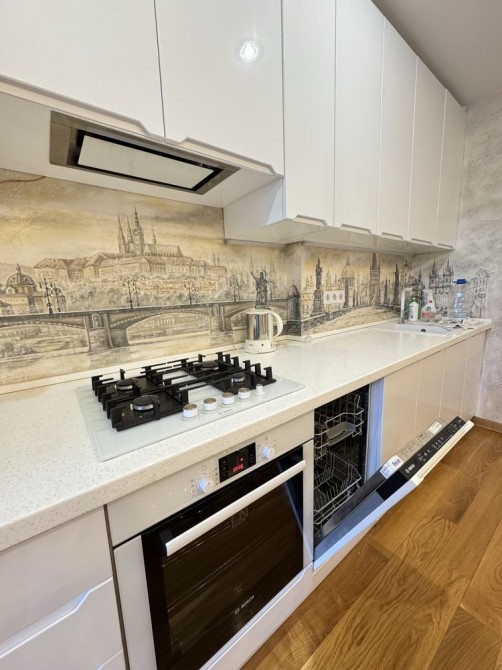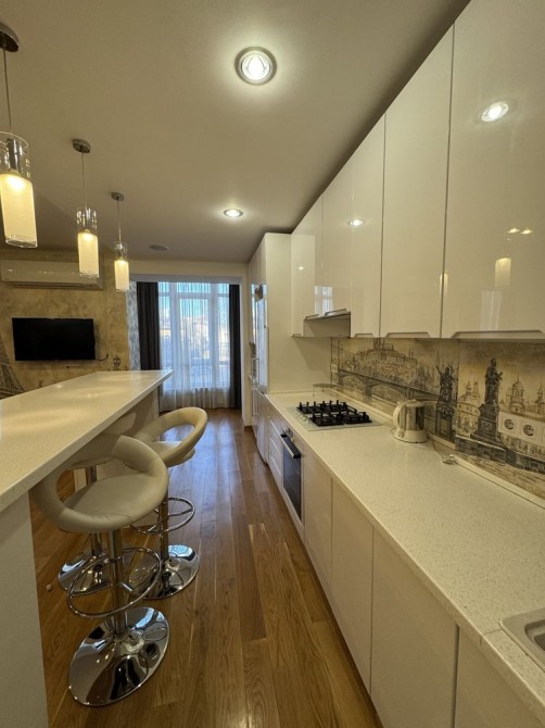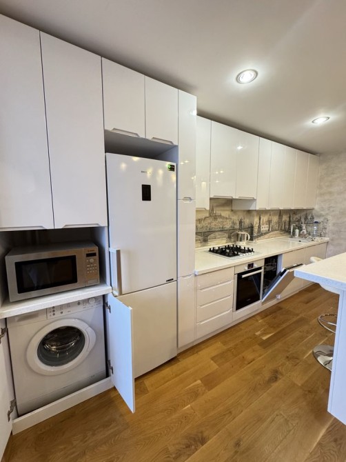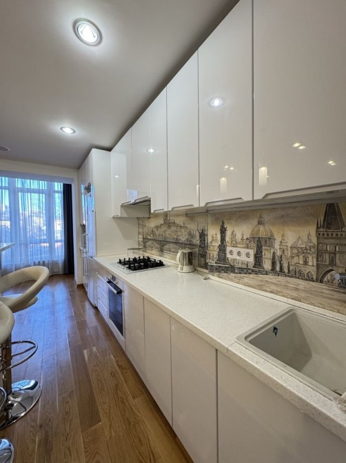 Квартира повністю укомплектована меблями та всією необхідною технікою: холодильник, пральна та сушильна машини, посудомийна машина, газова варильна поверхня, мікрохвильова піч, електрочайник, телевізор, кондиціонер, пилосос.