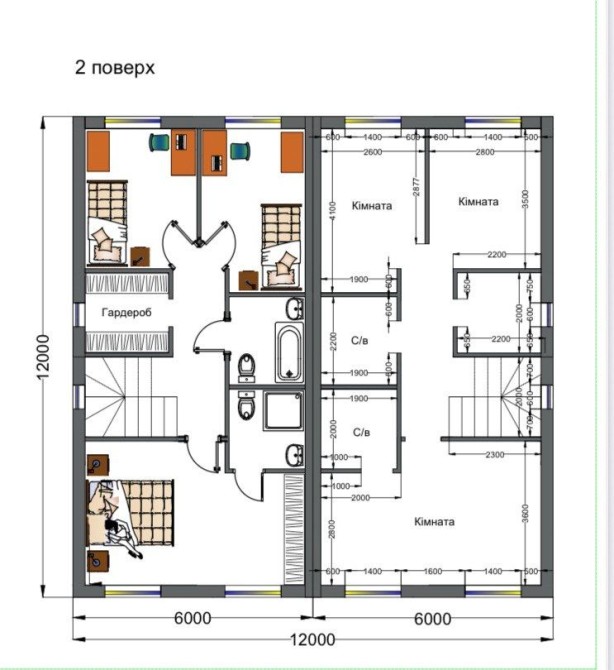 3с/в (один на першому поверсі та 2 на другому: один з них особистий в батьківській кімнаті)
