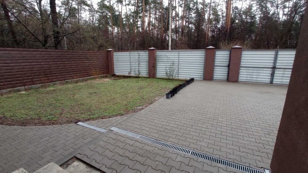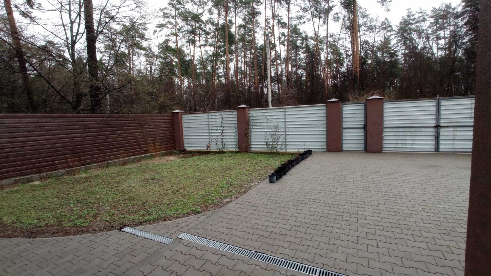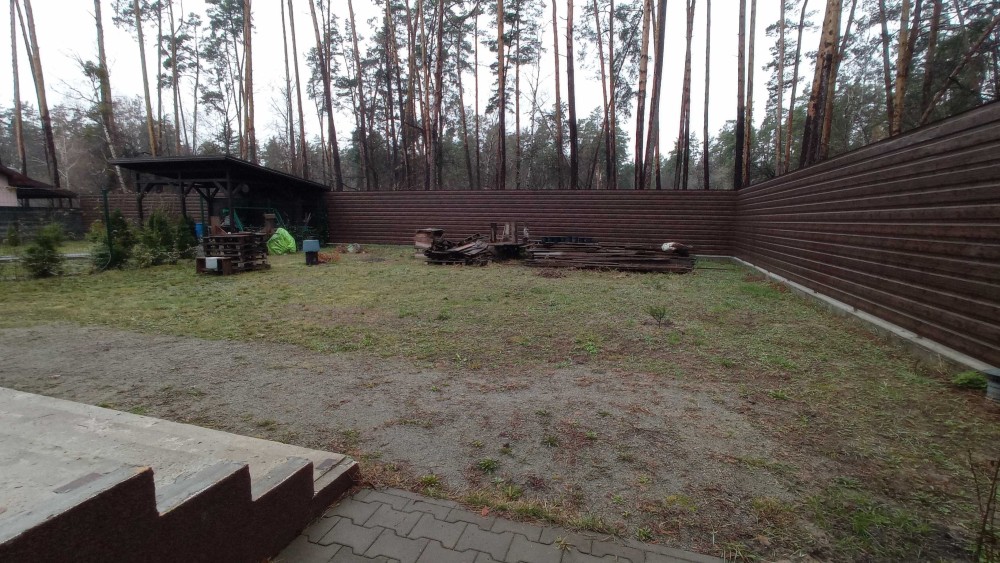 Локація справді варта уваги: навколо сосни, тиша, мінімум сусідів, з одного боку — заповідна зона без забудови, навпроти — зелені насадження. Це той випадок, коли відчувається приватність, простір і спокій. При цьому до супермаркету — лише 8 хвилин на авто.