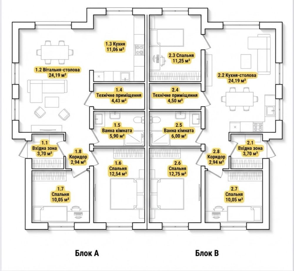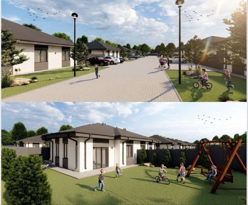 Сучасні одноповерхові дуплекси площею 75 м² з власною ділянкою 3,5 сотки