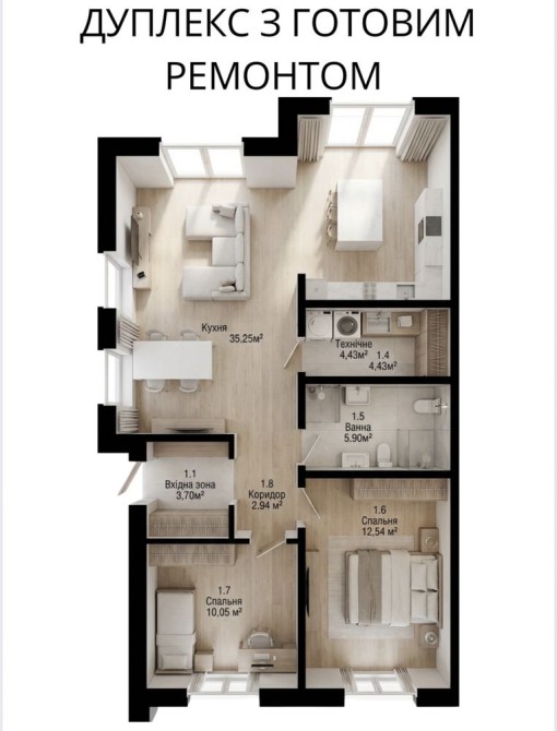 • Загальна площа 75 м2