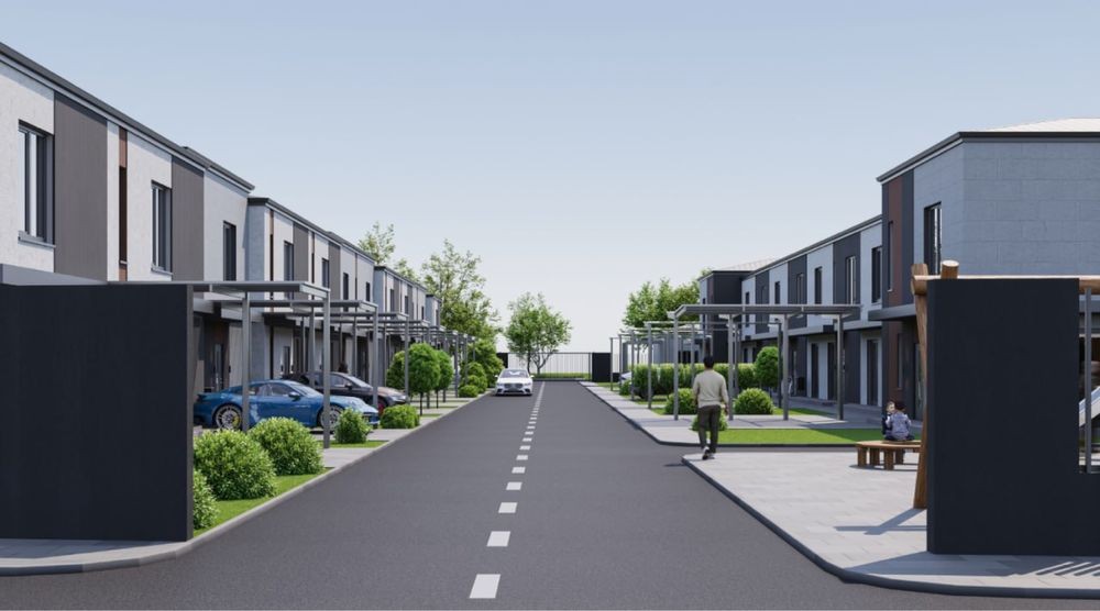 Дуплекс розташований у котеджному містечку із закритою територією, що забезпечує спокій та безпеку для мешканців.