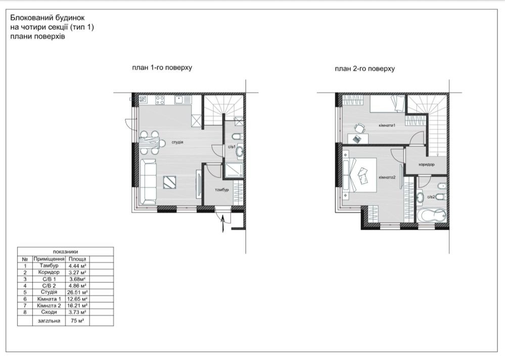 • Загальна площа 75 м2