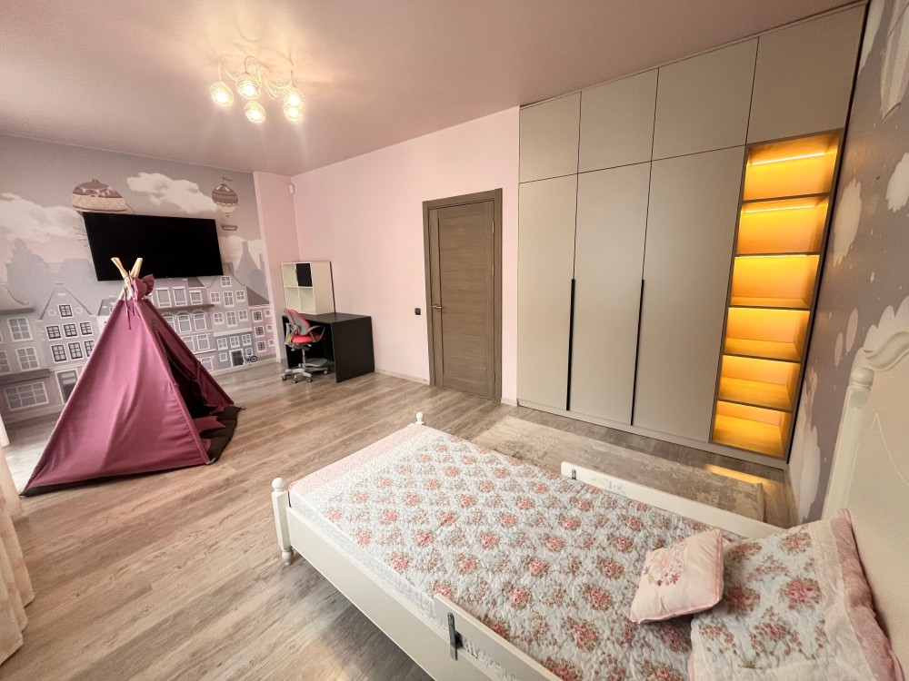 Всі необхідні меблі та техніка (газовий котел, витяжка, газова поверхня, духова шафа, мікрохвильовка, посудомийна машина, пральна машина, три телевізори 85”, 65”, 43”, все входить у вартість!