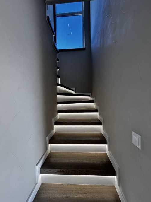 Будинок виконаний у світлих, теплих відтінках, що додає відчуття простору, затишку та наповнює оселю природним світлом. Завдяки великим вікнам у будинку багато світла та повітря, що створює особливу атмосферу комфорту.