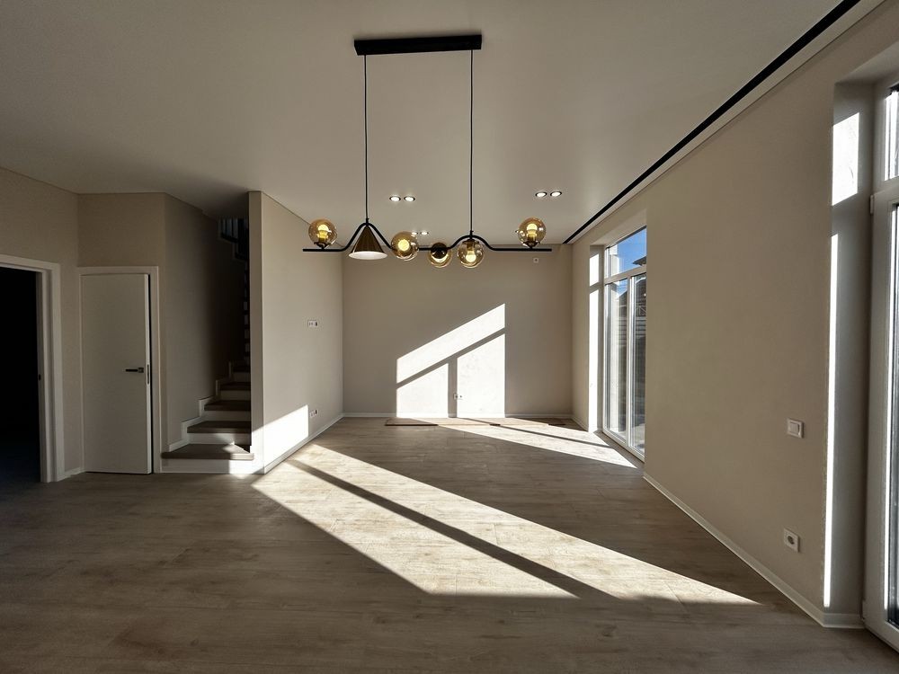 У будинку виконаний сучасний ремонт у світлих відтінках, без меблів — що дозволяє новим власникам облаштувати інтер’єр повністю на свій смак.