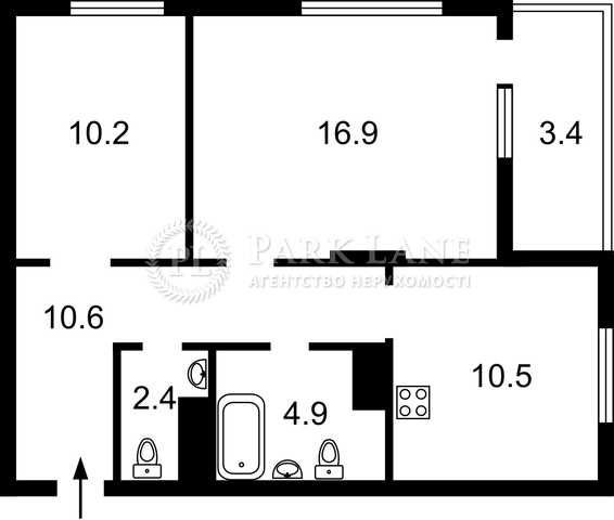 • Площа кухні 10.5 м2