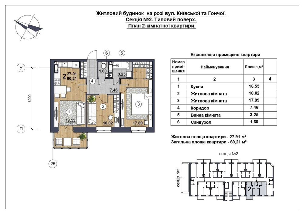 • Загальна площа 60.21 м2