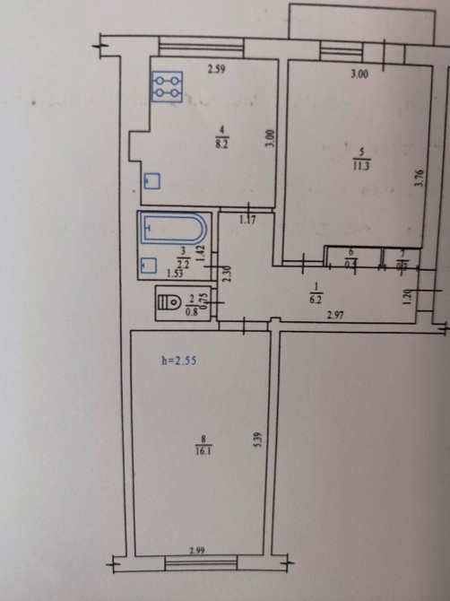 • Площа кухні 8 м2
