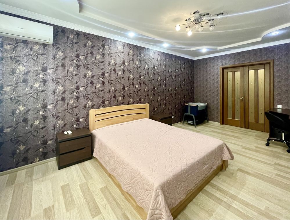 . шафа-купе, окрема гардеробна, в кімнаті ліжко, приліжкові тумби, робочий стіл+ столик, кондиціонер, комод, дитяче ліжечко.