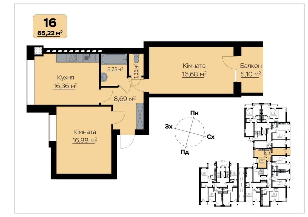 • Загальна площа 65.22 м2