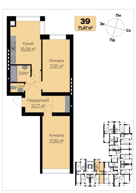 • Площа кухні 17 м2