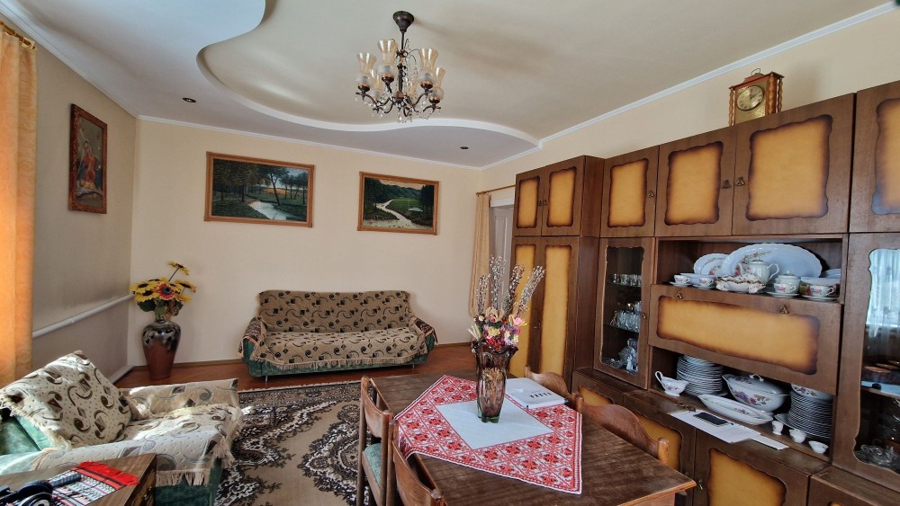 Продам новий будинок 2022 року на Нижньому ДНСі. Два поверхи плюс підвал і холодне горище. Газоблок Д-400 вкритий металочерепицею, обштукатурений і пофарбований, перекритий монолітним залізобетоном. Площа будинку 104 метри. Перший поверх: велика кухня 30 кв.м. з панорамним склінням і виходом на задній двір, передпокій, коридор, перший санвузол. Другий поверх: три житлові кімнати, другий санвузол, сходовий марш. У підвалі котельна, на горище розкладна драбина. Заведена вода зі свердловини 85 метрів, водовідведення в центральну каналізацію. Електроенергія 20 КВт. Змонтована система водяних теплих підлог і радіаторів, електричний котел на 10 КВт. По усьому будинку виконана розводка електрики. Стіни перетерті, металопластикові вікна з теплими скосами, в обох санвузлах розведена і змонтована сантехніка, укладений кахель, душова кабіна на першому і ванна на другому поверсі. На першому поверсі поли викладено плиткою, на другий закуплено і залишиться ламінат, також закуплені і залишаться вуличні світильники та деякі інші матеріали. Залізобетонні сходи на другий поверх викладені керамогранітом. Ділянка 2.5 сотки, обгороджена, відкатні автоматичні ворота. Двір вимощений тротуарною плиткою, змонтовано відведення стічних вод в дренажний колодязь. Залитий фундамент і колони під бесідку і барбекю. З вікон і бесідки відкривається чудовий панорамний краєвид на зелену зону річки Рось. Ціна: 160.000 у.о. Торг. Запрошуємо до співпраці продавців і орендодавців нерухомості. Агенція нерухомості пропонує повний перелік операцій з нерухомістю та супровідною документацією. Купівля-продаж, оренда, обмін житлових та комерційних об’єктів, земельних ділянок. Оцінка майна ринкова та для оподаткування. Технічні паспорти. Узаконення самочинного будівництва, добудови, перепланування. Початок будівництва та ввід в експлуатацію. Землевпорядні роботи: кадастровий номер, приватизація, розподіл, об’єднання, зміна призначення. Кредитування під заставу нерухомості. Безкоштовно приймаємо заявки від продавців та орендодавців. Гарантія конфіденційності. Юридичний супровід. м.Біла Церква Тел.(097)-879-80-99