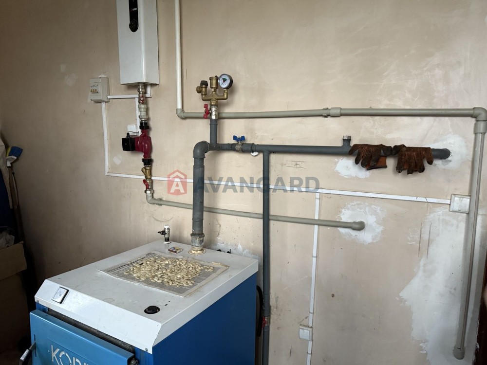 У будинку передбачено два види опалювання: електро та твердопаливний котли, встановлено бойлер.
