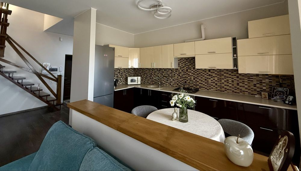 Вітаю. Пропонуємо в оренду чудову дворівневу квартиру в гарному затишному районі міста . Світла , простора , тепла та позитивна .перший поверх : вітальня , кухня - гостинна , санвузол , велика лоджія .
