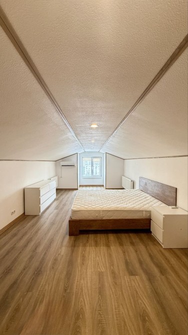 Квартира має простору кухню-студію для відпочинку на першому рівні та затишну окрему спальню на другому.