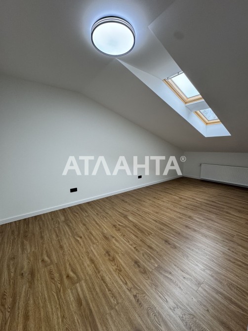 На першому поверсі велика кухня-вітальня 23 м2, вхідна зона 5,6 м2 та санвузол 4 м2, на другому поверсі спальня 20 м2, дитяча 17,2 м2, санвузол 3,2 м2.