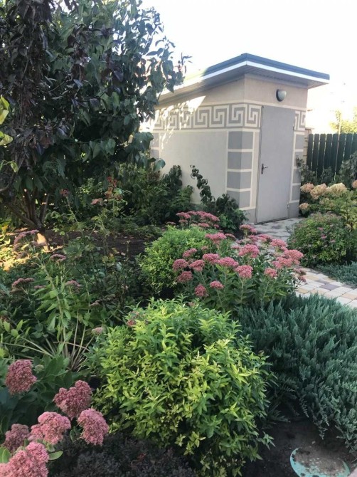 На участке есть газон, небольшой сад. Много цветов. Автополив.