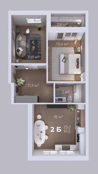 • Загальна площа 61 м2