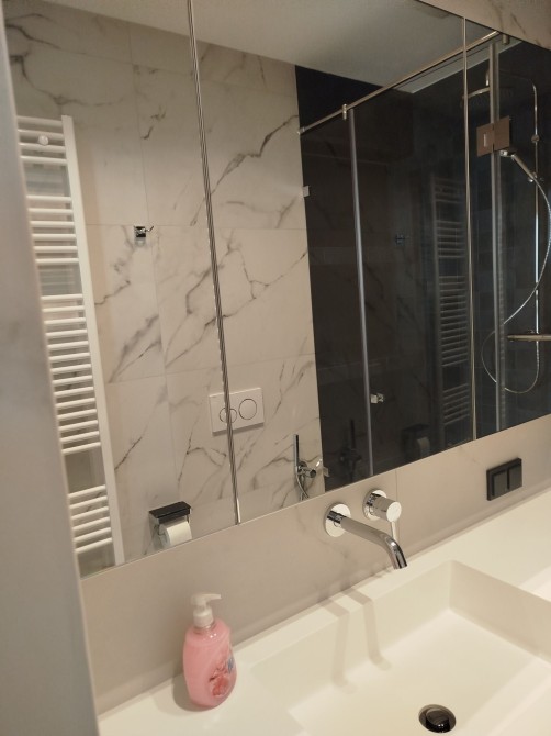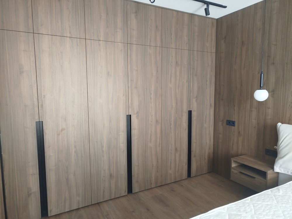 Ремонт выполнен в теплых шоколодных оттенках,очень уютно и стильно. Много дополнительноготосвещения.