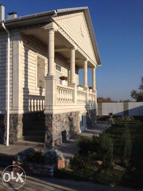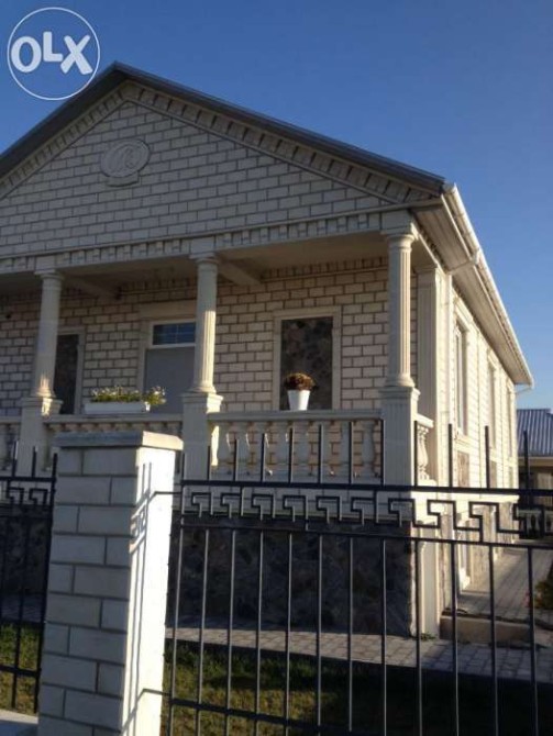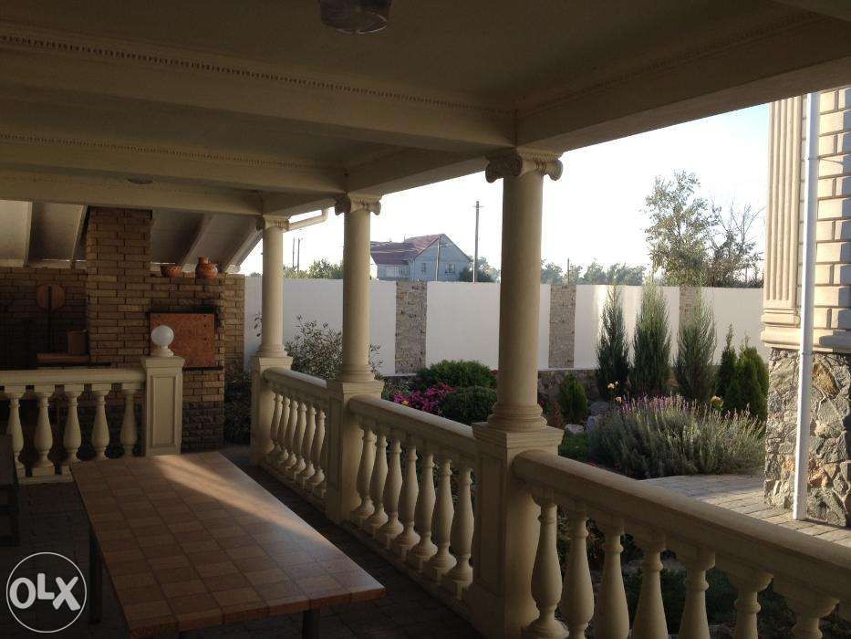 Внешняя облицовка ,колонны,балюстрада и прочие элементы отделки дома изготовлены из известняка (заказывал в Альминском карьере в Крыму). Дом продаю с мебелью и техникой.