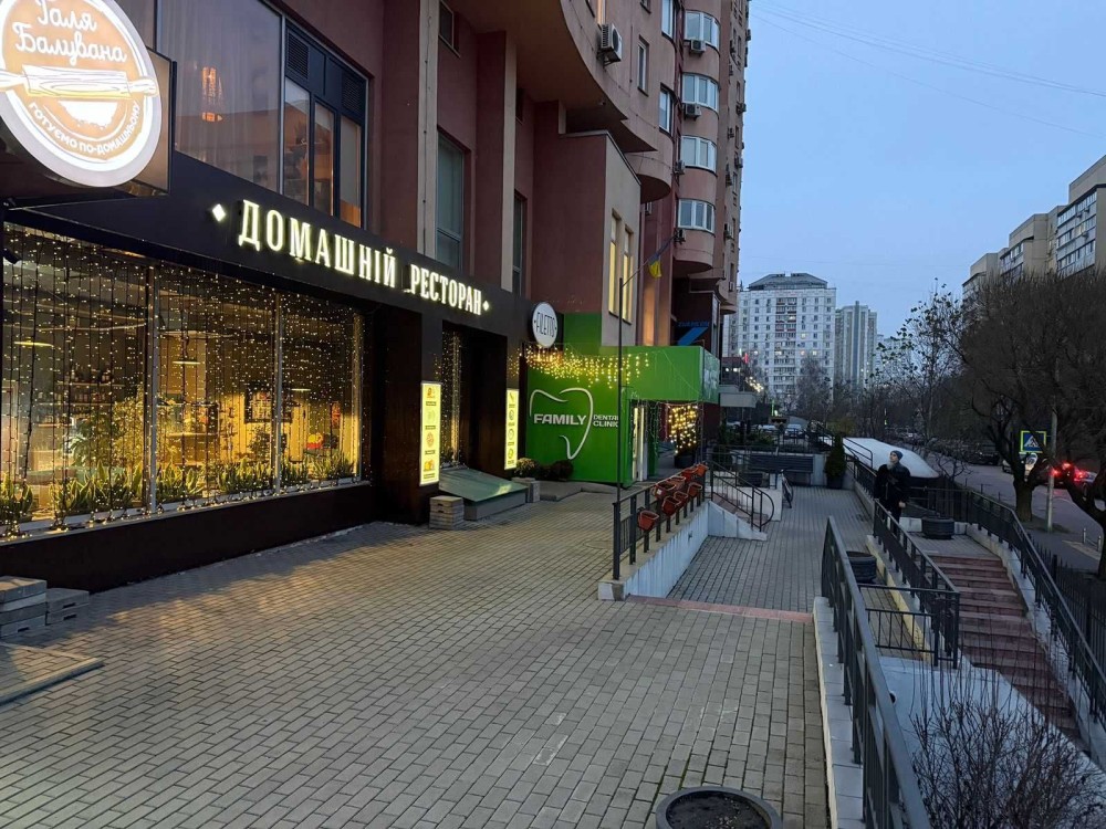 Фасадне комерційне приміщення у ЖК «Перлина Кадетського гаю». Площа 120 кв м. Фасадний вхід. Перший поверх. 3 панорамні фасадні вікна 2,5 на 1,9 м.