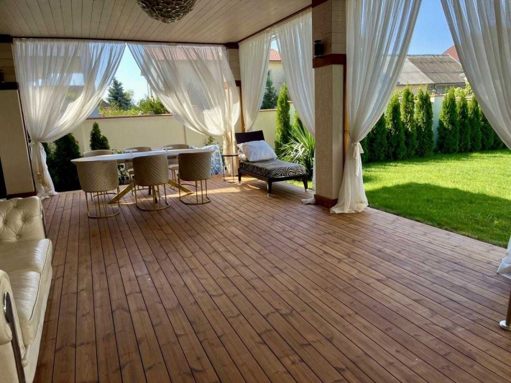 • Крита тераса з оздобленням з палубної дошки