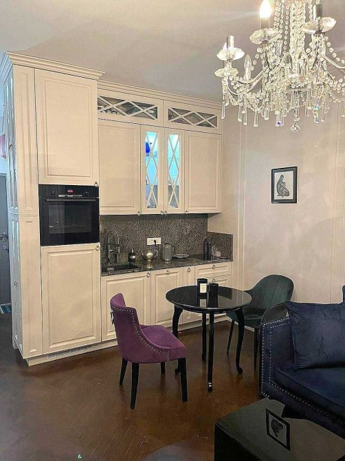 Дизайнерский ремонт, красивый декор. 55 м., студия, спальня, гардеробная, постирочная, балкон с видом на Ботанический Сад и море.