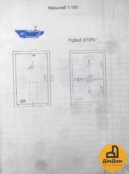 Площа: 41,2 м² (гараж — 20,7 м², підвал — 9,4 м² + 11,1 м²)