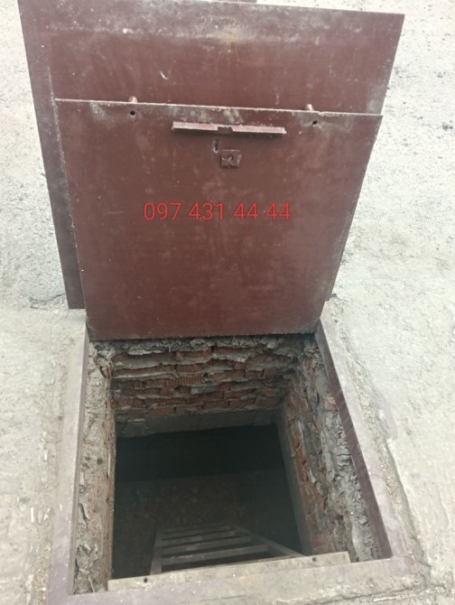 Отдельный глубокий погреб на бетонных блоках прямо перед заездом.