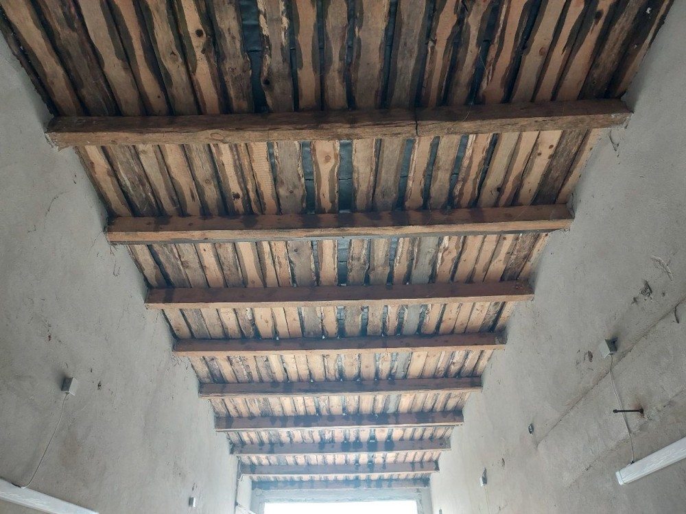 Бєтонний дах, покритий металопрофілем, тому гараж сухий
