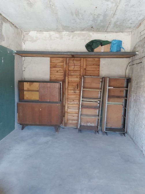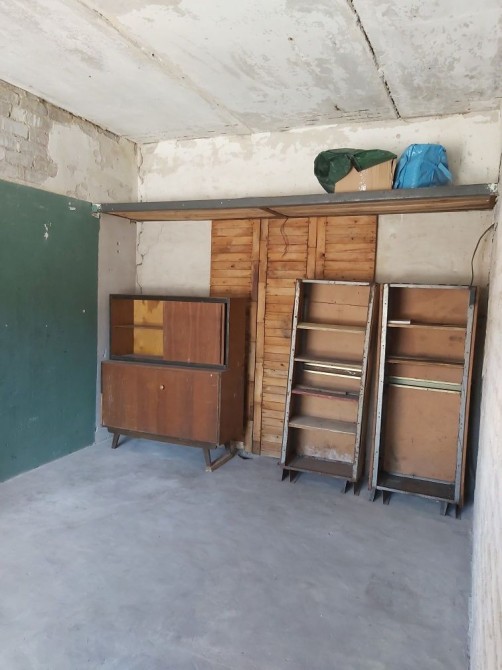 Металевий, підлога бетонна, утеплений керамзитом, є електрика. Великий погріб: 2 приміщення + прохід. Територія охороняється, вивозиться сміття, є естакада. Від власника. Торг.