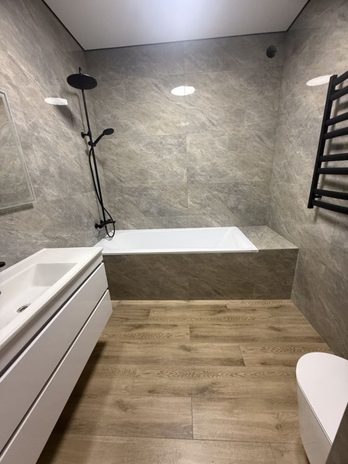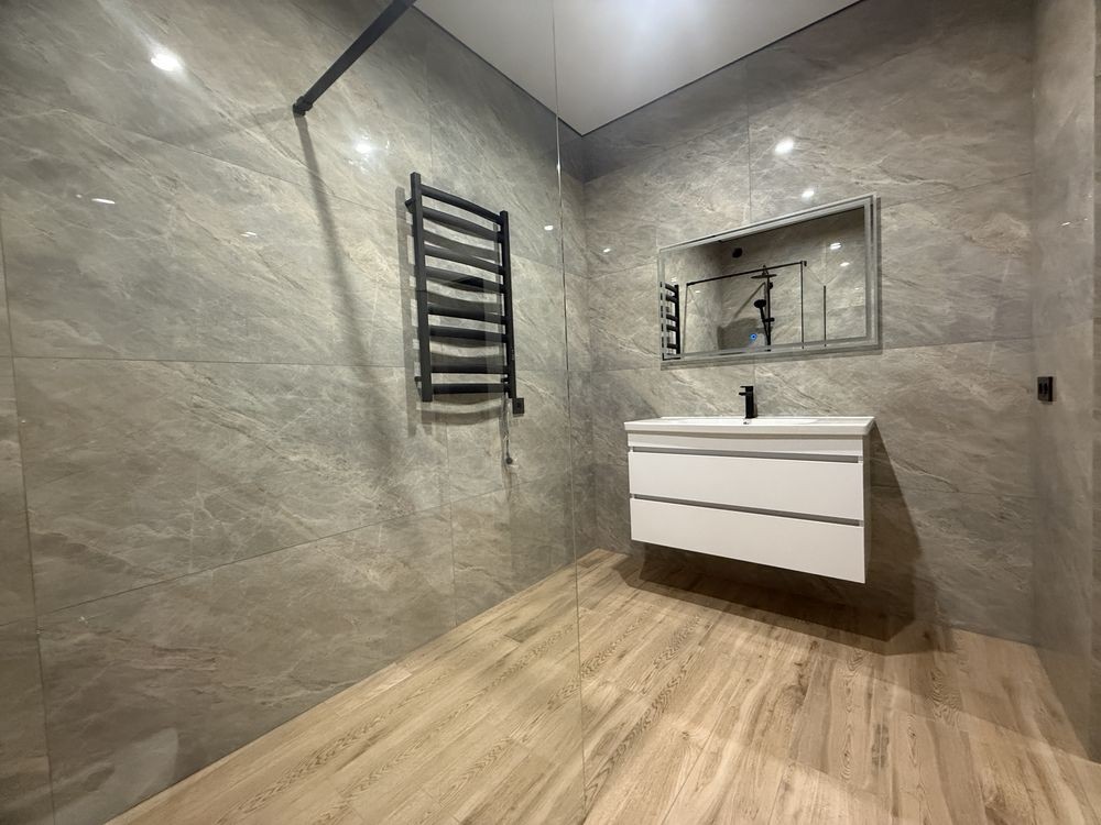 Водяна тепла підлога по всьому периметру, стіни під фарбування, двері прихованого монтажу.