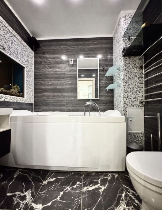 Особлива родзинка — акваріум-перестінок між дитячою кімнатою та ванною, який створює атмосферу спокою та додає інтер’єру неповторності.