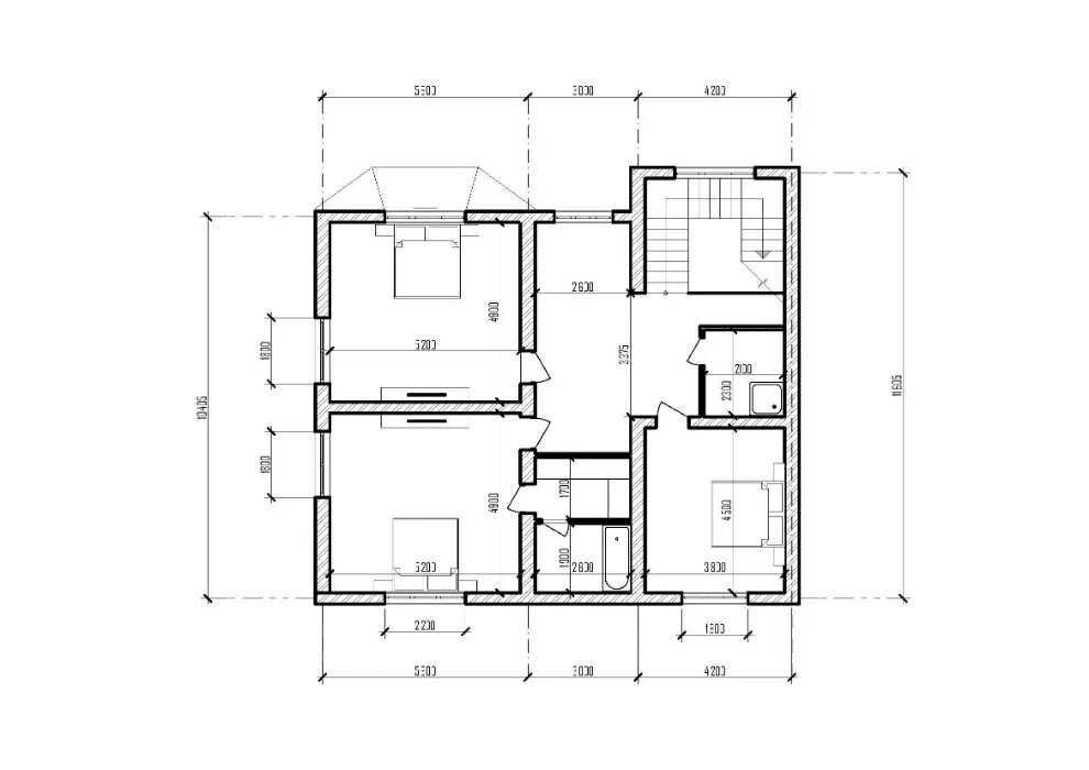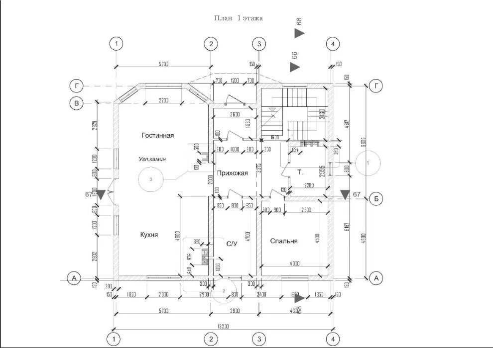 По плану: на 1-му поверсі - передпокій, кухня, вітальня, санвузол, спальня, господарські приміщення. На 2-му — 3 спальні, 2 санвузли, приміщення вільного призначення.
