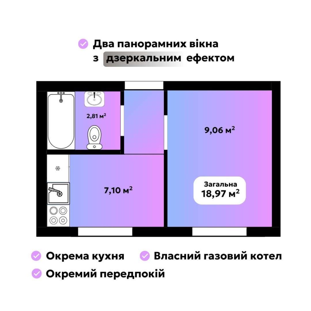 ГАЗ КОТЕЛ Смарти та студії 16-25 м2 СОН ПАНЕЛІ 1.5 км до Києва.
